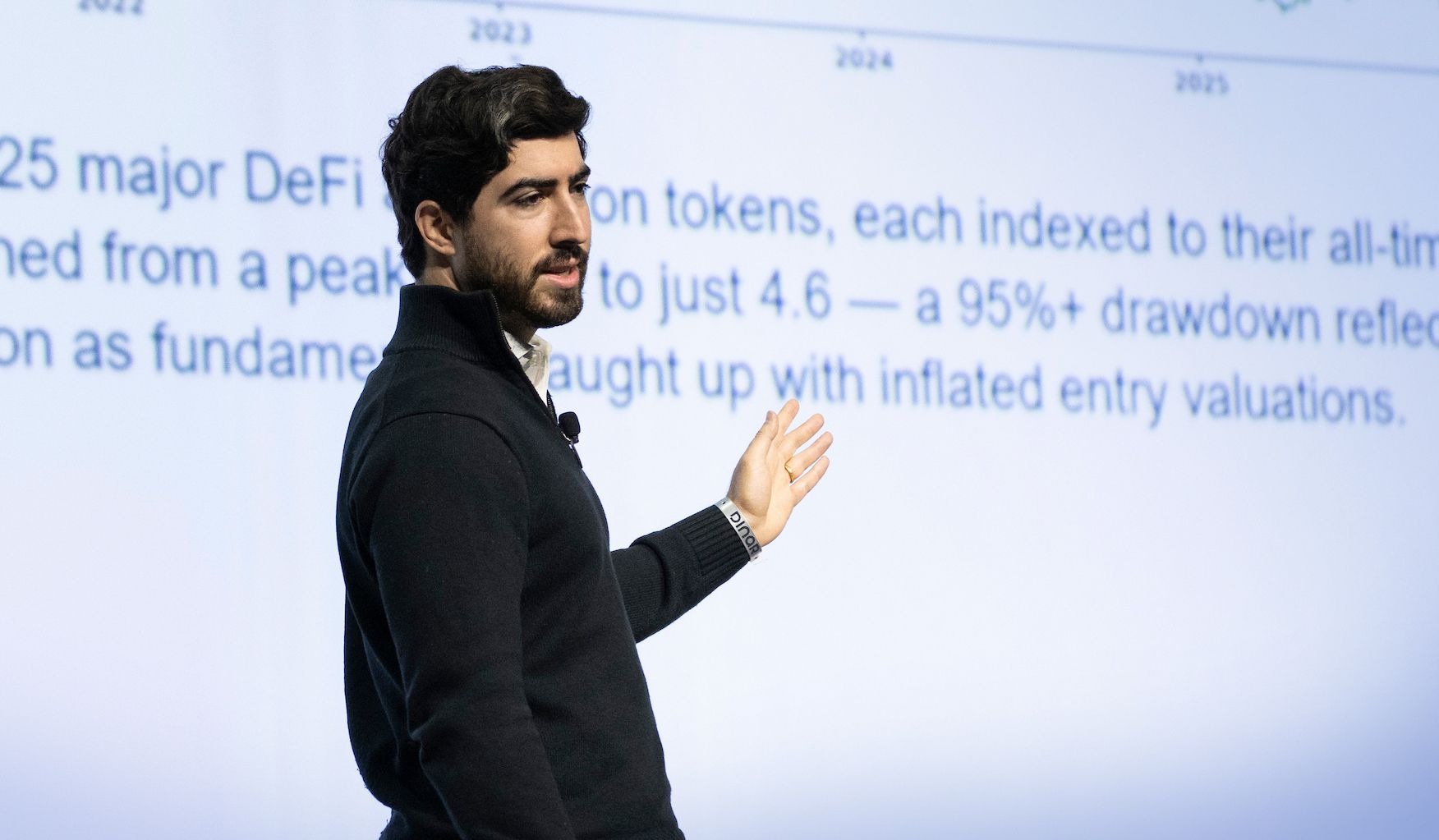 That’s surprising to me, given how far token prices have fallen: Felipe Montealegre noted onstage today that a basket of the top 25 DeFi tokens are 95% off their 2021 highs.