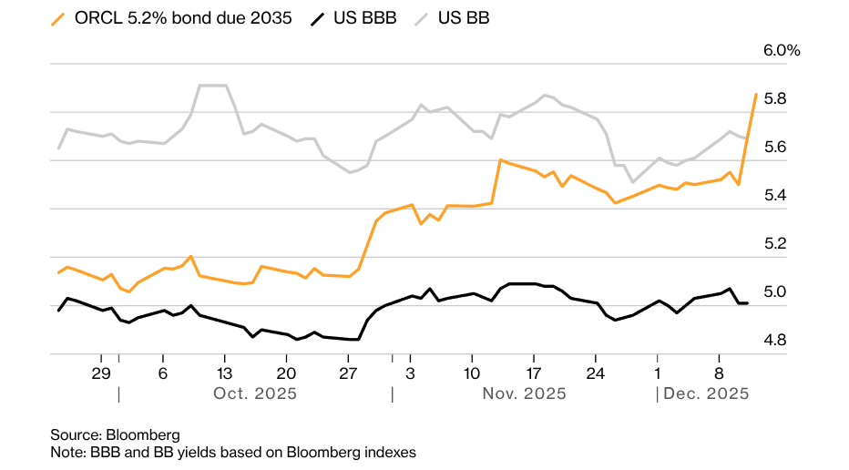 Bloomberg reports that Oracle debt now trades at junk-bond levels.