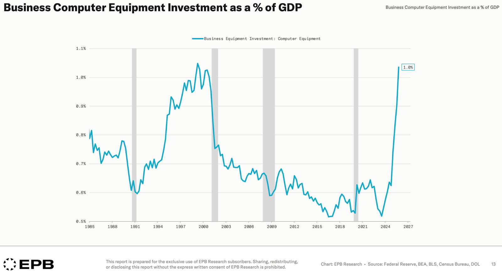 As a percentage of GDP, US business investment in âcomputer equipmentâ is approaching dotcom levels.