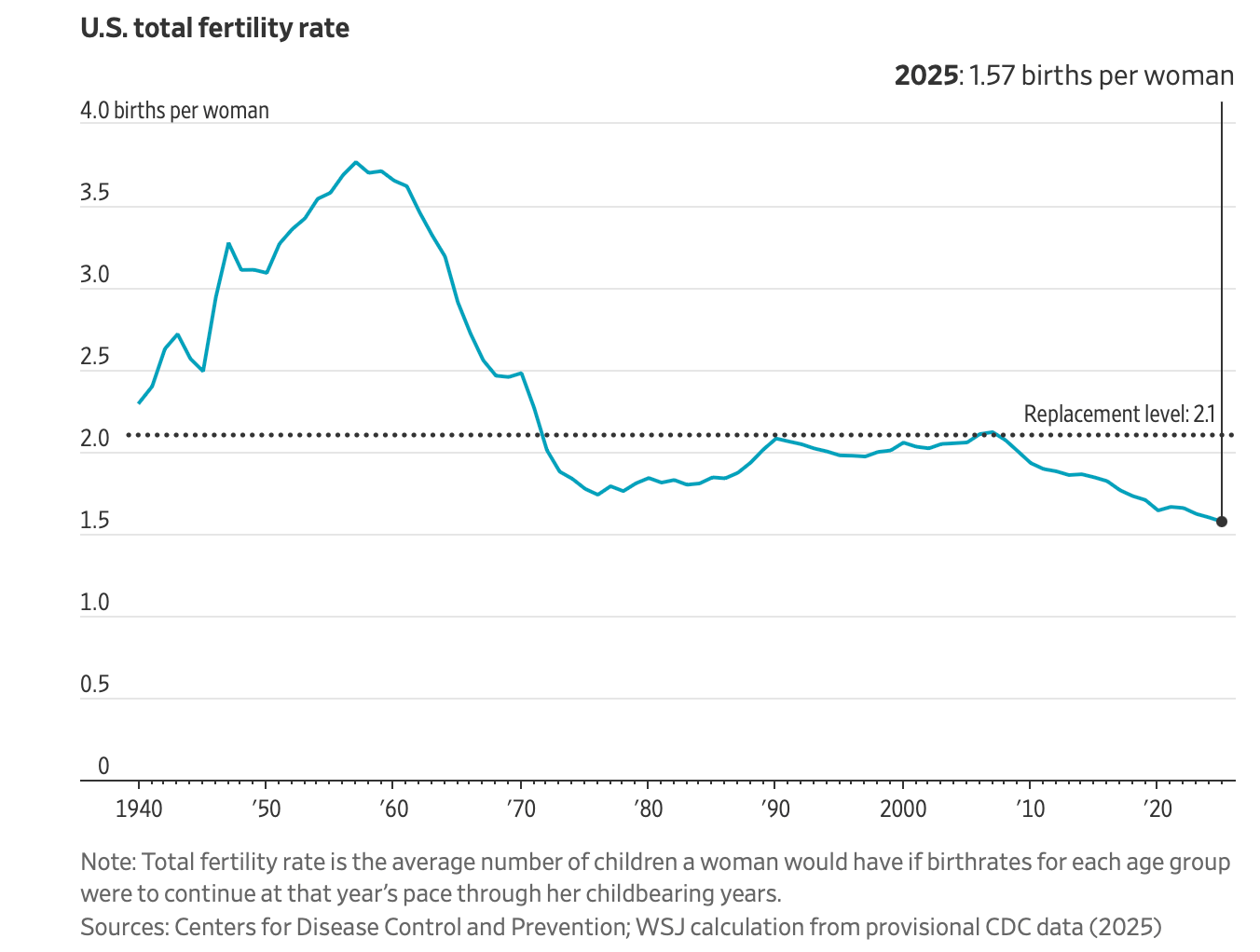 The Wall Street Journal attributes falling US fertility to âuncertainty about the future, including concern over finances, relationship stability and the political climate.â