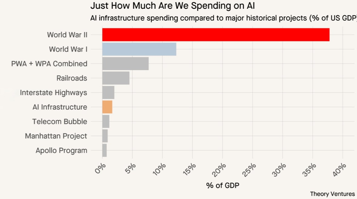 Tomasz Tunguz notes that AI infrastructure is only the sixth-biggest infrastructure project in US history (if wars count).