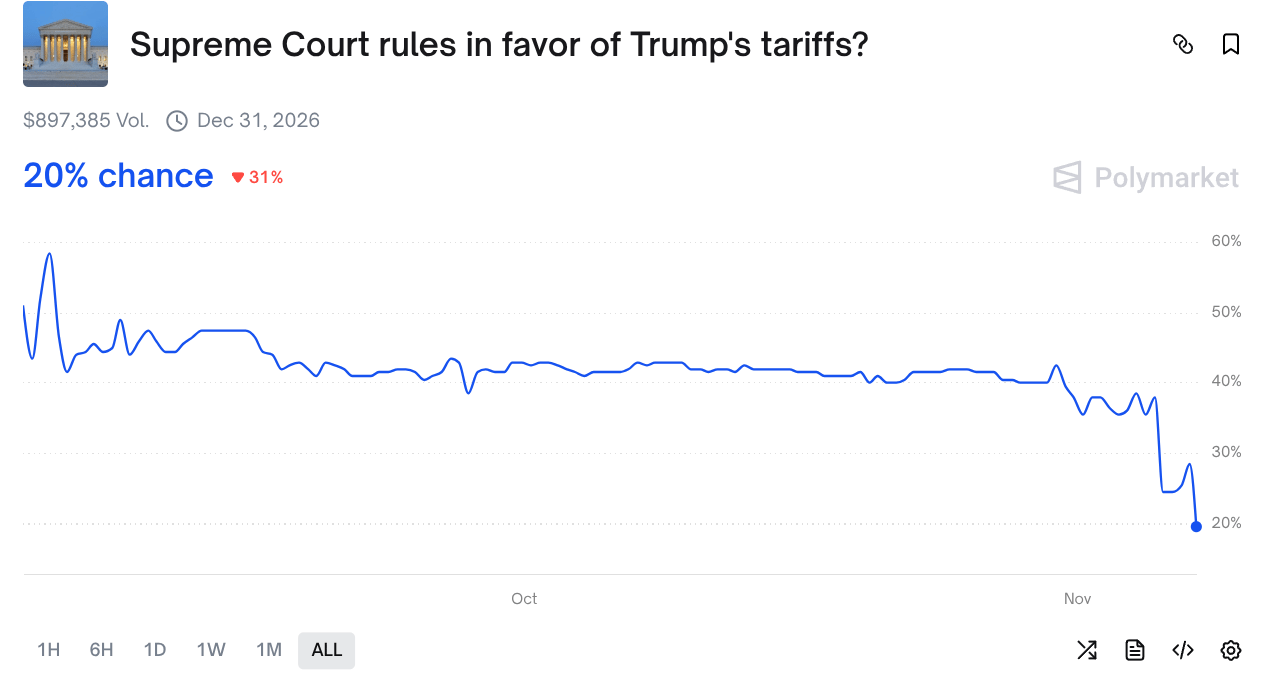 Polymarket betting suggests there’s an 80% chance the president’s IEEPA tariffs will be deemed unconstitutional. If the tariffs are revoked, inflation would presumably fall, giving the Fed room to cut interest rates. Tariff payers might even get the $90 billion they paid refunded. What happens if we get rate cuts, bigger deficits and an AI capex boom? The bubble might only just be getting started.