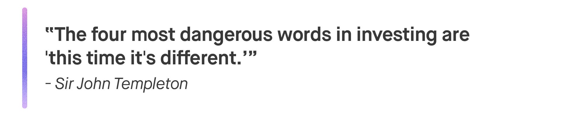 "The 12 most dangerous words in investing are "the four most dangerous words in investing are 'this time it's different.'""
