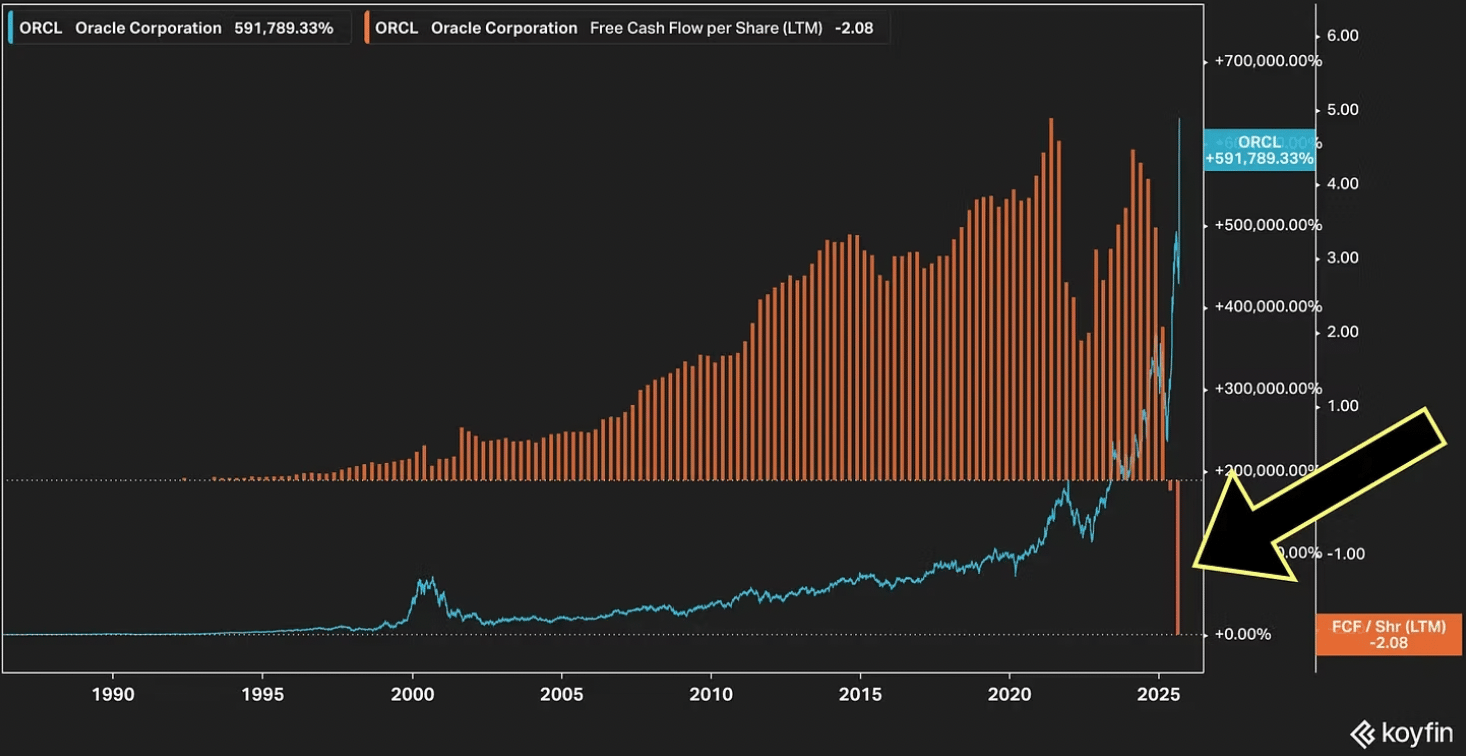Michael Allison notes that Oracle, which has almost always prioritized cash flows and share buybacks, is suddenly throwing caution to the wind and betting so big on AI it will have to either sell a lot of equity or borrow a lot of money.