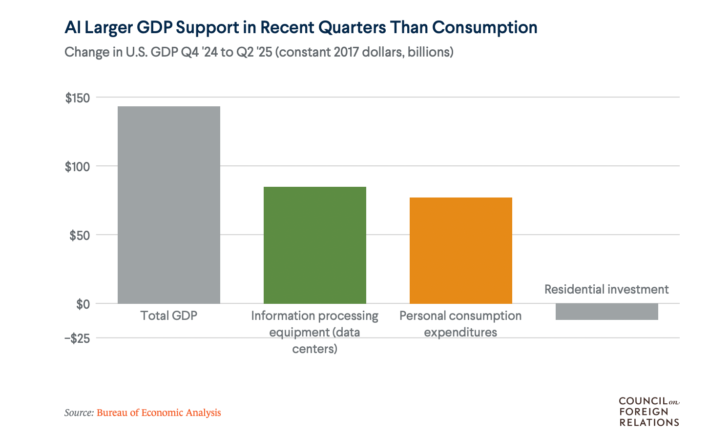 In the first half of the year, AI infrastructure investment was a bigger portion of US GDP growth than consumers were.