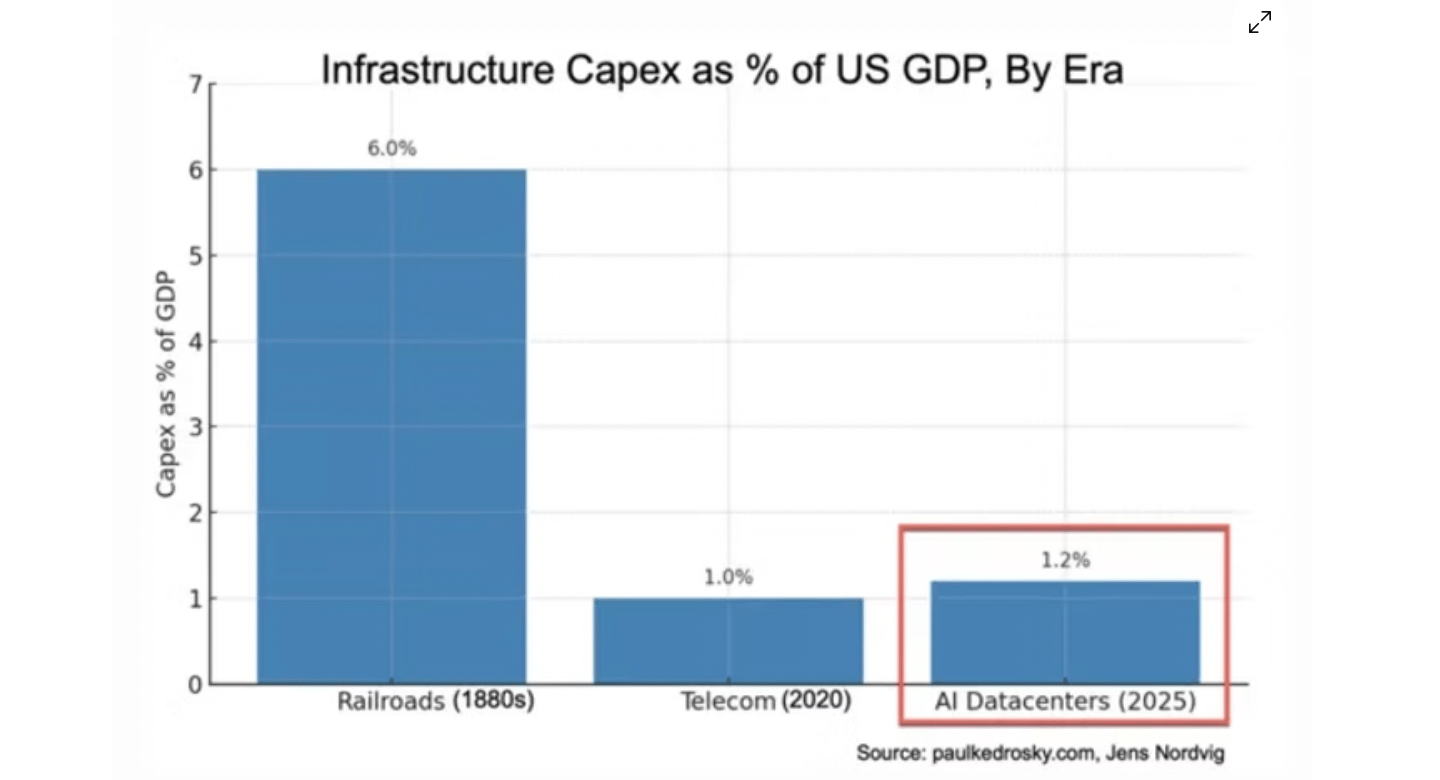 As a percentage of GDP, the investment in AI data centers is already bigger than the investments in internet infrastructure.