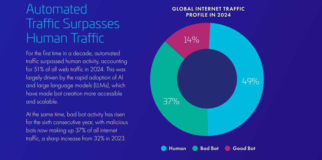 Worse yet, 37% of all internet traffic is attributable to “bad bots” operating with “malicious” intentions.