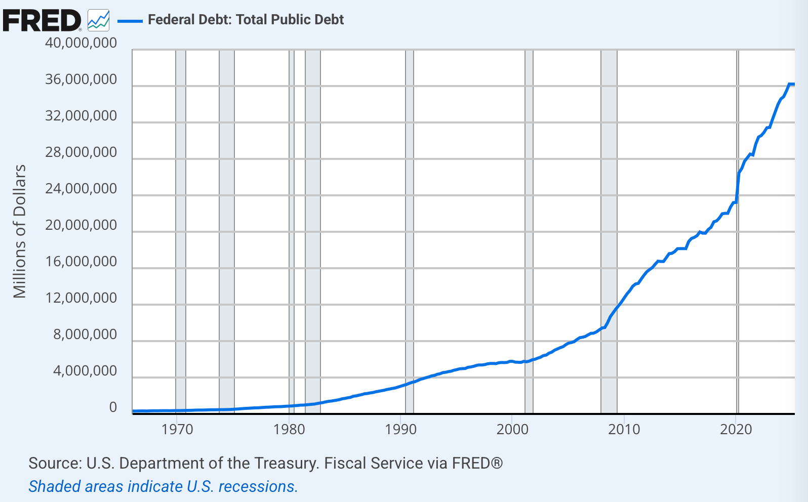 Despite a strong economy, the US has made no effort at all to reduce its debt, and that has gotten people worried about fiat money again.