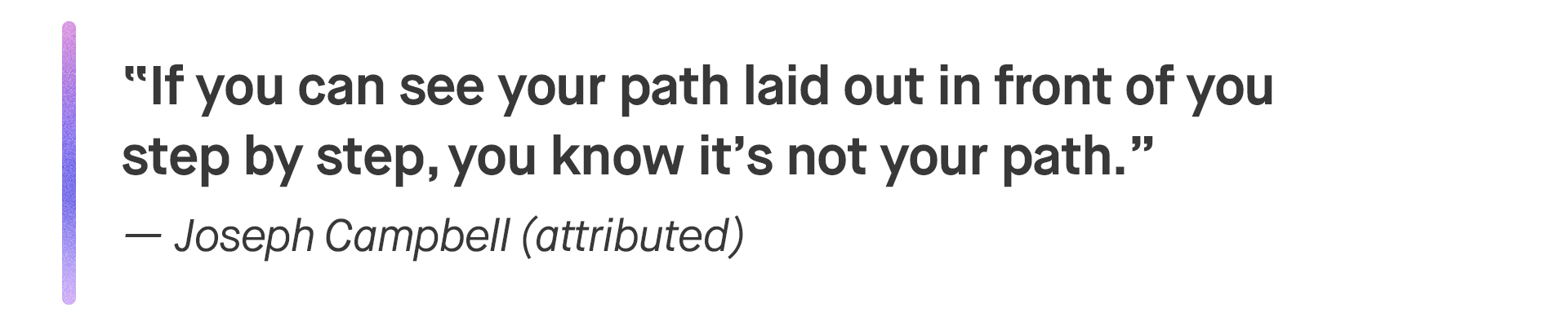 But it’s pretty close to what the great mythologist described: Our business heroes, living a normal life, feel a call to adventure. They take a leap into the unknown. They risk everything, teeter on the edge of disaster, and overcome all obstacles. Triumphant, they return home to improve the world they came from.
