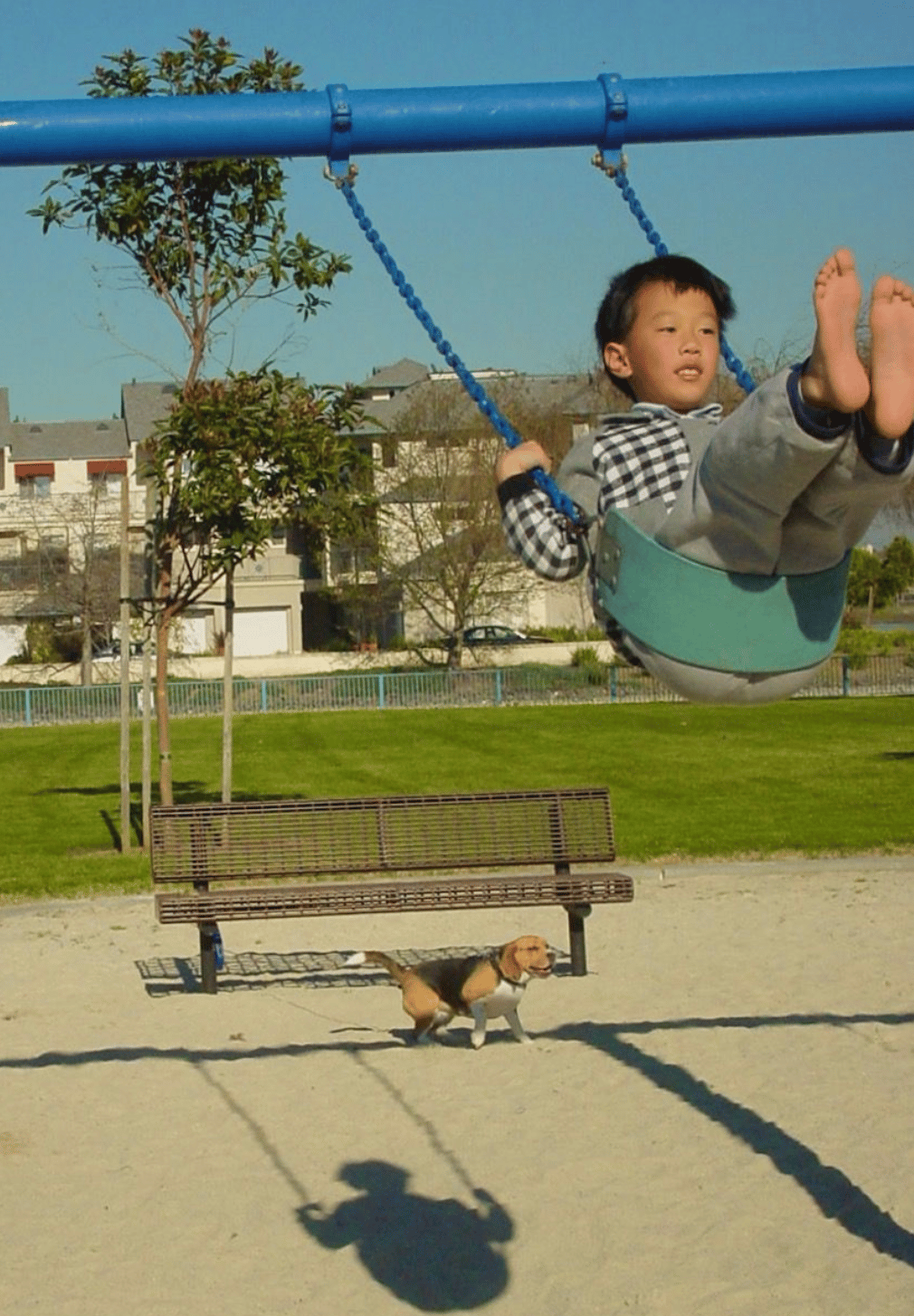 Yan’s journey begins in California, where he’s raised by a single mom. An archival photo proves he was a solitary child, typically in the playground by himself, with only his loyal dog for company.