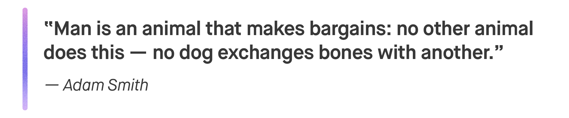 Humans remain the only economic actors among animals — dogs still don’t exchange bones.